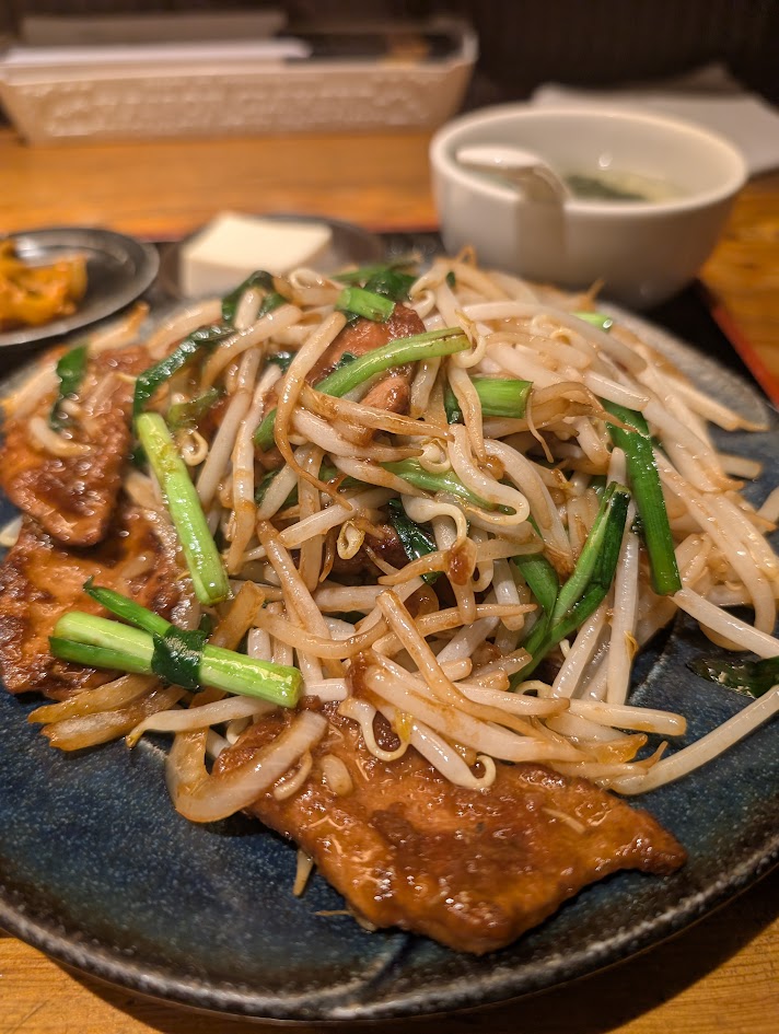 しっかりご飯茶碗をもってバウンドさせながら食してください。あっという間にご飯がなくなります。スープや冷ややっこ、大根のお漬物は特に言及ポイントはありませんが、まさに油料理を食べた後の複雑なお口のクリーニングのためでしょうか。お腹いっぱいな場合は残してお水で代わりはできます。